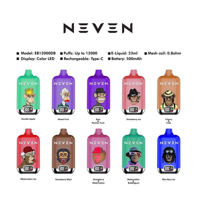 The EB DESIRE EB12000DB is a smart digital disposable vape that combines stunning design with unparalleled performance. Boasting a sleek box shape, curved corners, and a sleek chrome metal base, this vape is a true head-turner. The vibrant LED display adds a touch of modern flare, while the monkey expressions and cartoon patterns on the surface amplify its cool quotient. Prefilled with 23ml of e liquid for up to 12000 satisfying puffs, it’s powered by a mesh coil with 0.8ohm resistance for massive vapor production and an enhanced vaping sensation. The built- in 550mAh rechargeable battery charges via a convenient Type-C port, ensuring you never miss a beat. Choose from 10 well crafted flavors and enjoy.